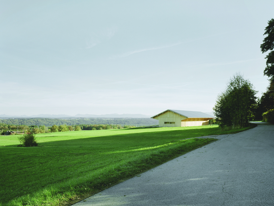Die Halle bildet mit der Bestandsscheune ein schönes, einfaches Ensemble, das sich entlang der Höhenlinien in die Topografie einfügt und sowohl zum Vorplatz, als auch zur Landschaft hin öffnet. Zunächst steht die einfache und robuste landwirtschaftliche Nutzung als Einstellhalle und Hackschnitzellager im Vordergrund. Die bauliche Struktur ist jedoch so angelegt, dass sich die Halle auch zu einer „Kulturscheune“ mit zweigeschossigen Ateliers und Galerien umbauen und umnutzen lässt. Da die Maschinenhalle in einer exponierten Lage errichtet wurde, nahm die Bevölkerung regen Anteil am Entstehen des Projekts. Die Baustelle wurde gerne und häufig besucht – und: die Maschinenhalle wurde positiv aufgenommen und wird als Bereicherung des Ortes verstanden. Der Innenraum regt zu Veranstaltungen an, die weit über die landwirtschaftliche Nutzung hinausgehen. So hat bereits zweimal der Frühschoppen der örtlichen Blaskappelle und eine Aufführung der örtlichen Theatergruppe in der Halle stattgefunden.